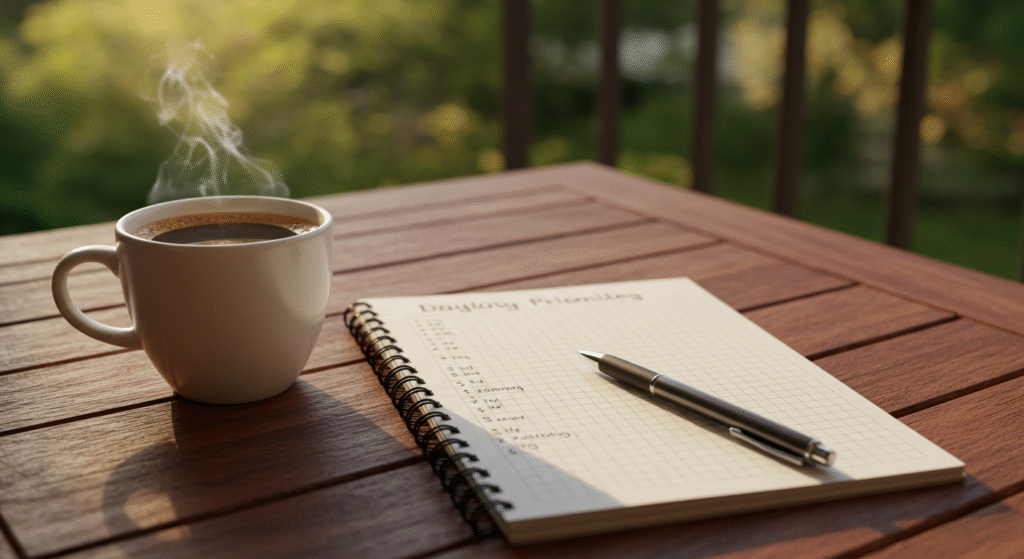 Em vez de se perder em uma lista de 20 tarefas, escolha apenas 3 prioridades por dia.